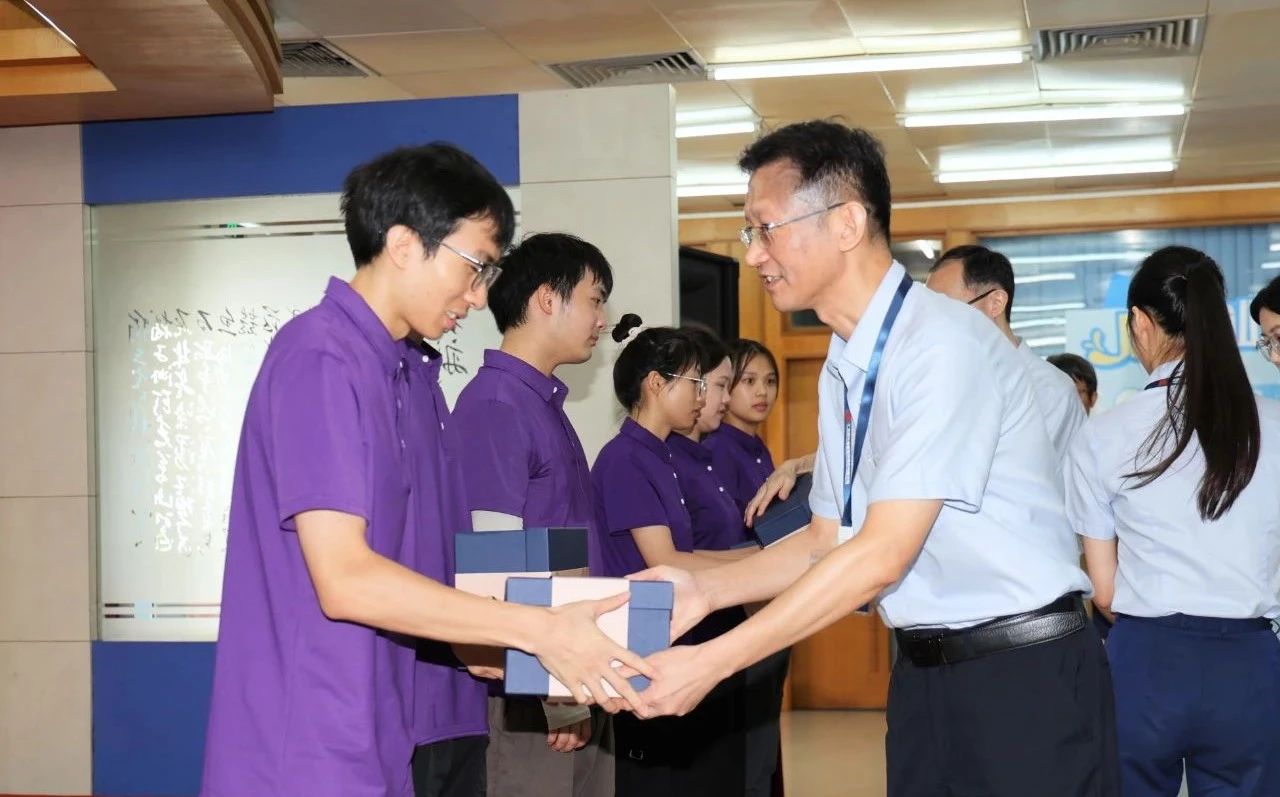 楊曉平向“啟航訓(xùn)練營”傳遞火炬,新員工代表接過熊熊燃燒的火炬,象征著新一代風(fēng)華人接過振興民族產(chǎn)業(yè)的接力棒,賡續(xù)奮斗,薪火相傳。公司領(lǐng)導(dǎo)為新員工頒發(fā)入職禮盒,希望大家以風(fēng)華為舞臺,開始描繪美好人生,也希望大家在培訓(xùn)期間,快速轉(zhuǎn)換角色,融入風(fēng)華、融入崗位,為公司的可持續(xù)高質(zhì)量發(fā)展注入新的活力和動力。新員工代表孫凱威分享心得,勉勵新同事們向前輩學(xué)習(xí),從實踐學(xué)習(xí),對標(biāo)一流企業(yè),提升技能本領(lǐng);以高度的責(zé)任感和使命感,認(rèn)真履行崗位職責(zé),以追求卓越的創(chuàng)新精神,開拓新思路和新領(lǐng)域,推動公司領(lǐng)跑未來。青春之火,熊熊燃燒?,F(xiàn)場掌聲雷動,歡呼聲熱烈,營造出青春熾熱、昂揚(yáng)向上的澎湃氛圍。