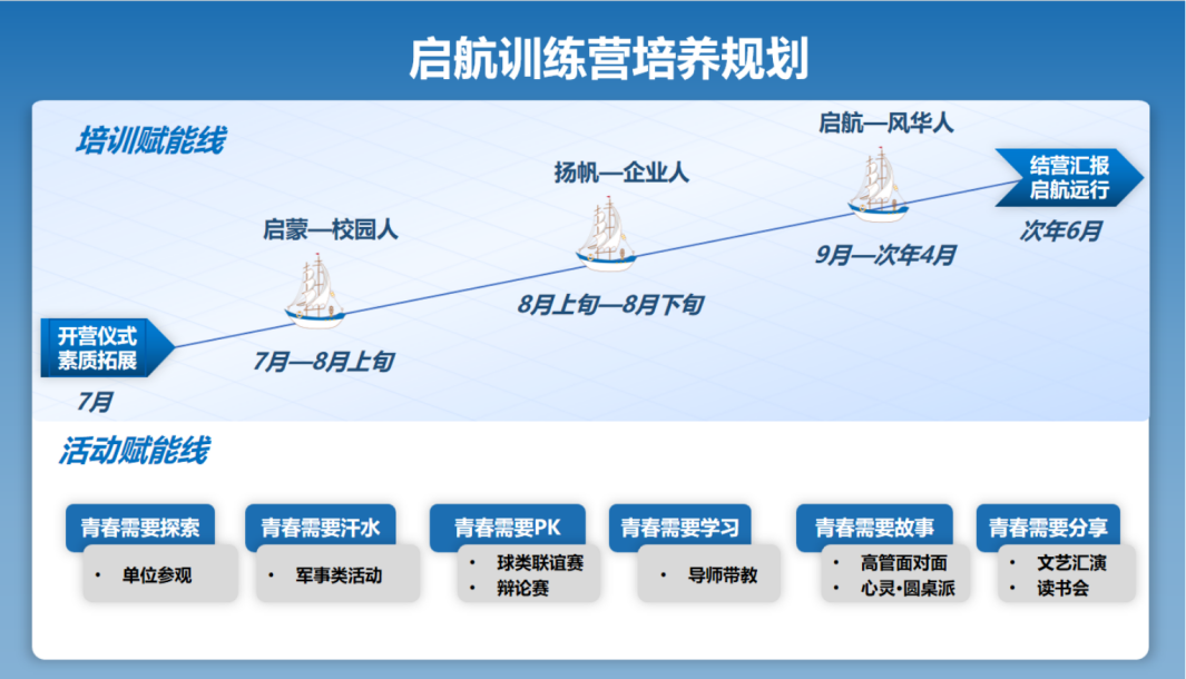 接下來,公司將針對新進(jìn)員工實施“1+3”培養(yǎng)戰(zhàn)略,啟動為期1年的“啟航訓(xùn)練營”項目,通過啟蒙、揚(yáng)帆、啟航三個階段,輔以訓(xùn)戰(zhàn)結(jié)合的模式,使統(tǒng)招畢業(yè)生真正啟航遠(yuǎn)行。通過集訓(xùn)+輪崗+在崗培訓(xùn)等形式,開展軍訓(xùn)、公司文化、產(chǎn)品知識、安全生產(chǎn)、崗位技能等360°無死角的培訓(xùn)活動,并舉辦聯(lián)誼賽、辯論賽、文藝匯演、高管面對面、結(jié)營匯報等活動賦能,培養(yǎng)新員工團(tuán)隊協(xié)作精神,鍛煉新員工攻堅克難毅力,增加其對公司的認(rèn)同感與歸屬感,并通過持續(xù)的“傳幫帶”“師帶徒”機(jī)制提升其專業(yè)能力,將新員工培養(yǎng)為所在崗位的骨干力量,充分激發(fā)公司活力與創(chuàng)新力,推動實現(xiàn)公司“致力成為高端電子元器件的領(lǐng)跑者”的美好愿景。