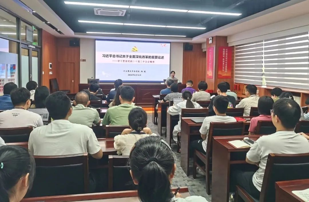 8月14日,研究院黨總支組織全體黨員開展“學(xué)習(xí)黨的二十屆三中全會(huì)精神主題黨日活動(dòng)”,集中學(xué)習(xí)黨的二十屆三中全會(huì)公報(bào)、《決定》和《決定》。并以開展黨員學(xué)習(xí)教育培訓(xùn)班為契機(jī),8月16日邀請(qǐng)市委黨校博士講師圍繞黨的二十屆三中全會(huì)精神深入解讀,幫助廣大黨員干部全面把握會(huì)議提出的新理念、新戰(zhàn)略、新舉措。