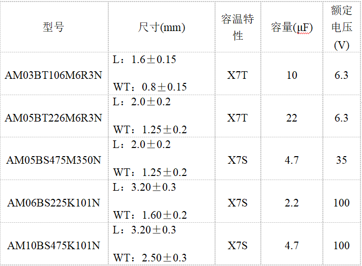 作為應(yīng)用最廣泛的被動元件,MLCC被大量應(yīng)用于新能源汽車自動駕駛系統(tǒng)、動力系統(tǒng)、車身系統(tǒng)、底盤系統(tǒng)、車載娛樂系統(tǒng)等方面。目前同時具備高容量、高溫可靠性、高額定電壓的車規(guī)MLCC產(chǎn)品在國內(nèi)尚屬空白。風(fēng)華高科基于自主開發(fā)的高容高壓材料體系,實(shí)現(xiàn)了以AM05BS475M350N(0805 4.7μF 35V X7S)為代表的車規(guī)級高容高電壓系列產(chǎn)品的驚艷亮相,填補(bǔ)了國內(nèi)空白!AM05BS475M350N產(chǎn)品封裝尺寸為英制0805,容量為4.7μF,額定電壓為35V,是目前該尺寸和容量產(chǎn)品的行業(yè)次高電壓水平。