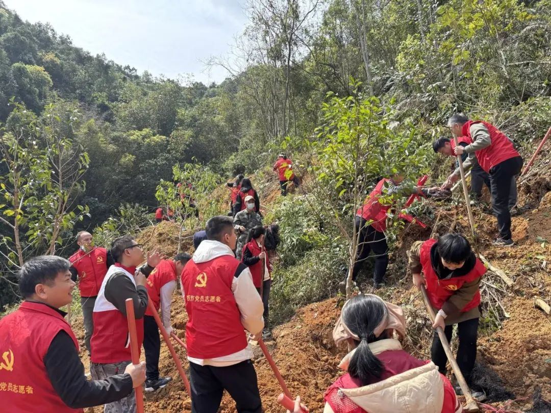 活動(dòng)上,王一民與陳彩喜共同為“風(fēng)華經(jīng)濟(jì)林”揭牌,標(biāo)志著這片兼具生態(tài)功能與經(jīng)濟(jì)價(jià)值的示范林區(qū)正式啟動(dòng)建設(shè)。近70名黨員干部熱情高漲投入到植樹(shù)活動(dòng)中,大家在林業(yè)技術(shù)人員的指導(dǎo)下,有序開(kāi)展培土固苗、澆水養(yǎng)護(hù)等工作,省道沿線呈現(xiàn)出一派火熱的“綠色會(huì)戰(zhàn)”場(chǎng)景。經(jīng)過(guò)協(xié)同作戰(zhàn),300多株鐵冬青、肉桂等優(yōu)質(zhì)樹(shù)苗錯(cuò)落扎根,為都平鎮(zhèn)勿乃村增添了一片生機(jī)勃勃的新綠。